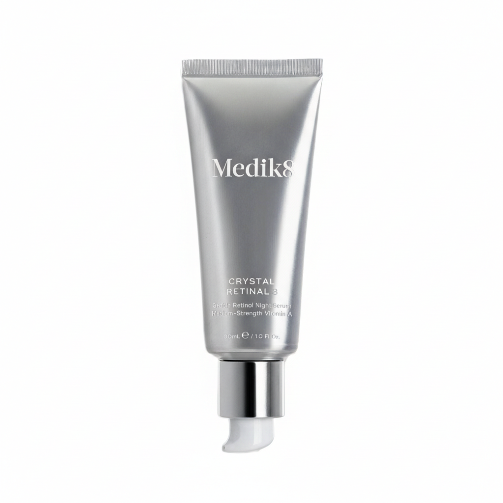 Sèrum-crema de nit amb retinal. La darrera innovació de Medik8 de vitmina A, 11 vegades més eficaç que el retinol, amb 0,03% de retinaldehid encapsulat.